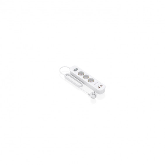 AISENS Regleta de Enchufes Multifuncion con 3 Tomas + Cargador PD3.0 20W 2xUSB-C, 2xUSB-A, 1.4m, Blanco