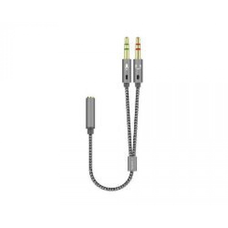 AISENS Cable Adaptador Audio Jack 3.5 4pines/H-2xjack 3.5 3pines/M, Gris, 25cm. Conector 1: 2 x 3.5mm, Género del conector 1: Macho, Conector 2: 3,5mm, Género del conector 2: Hembra, Material del cable: Cobre, Contactos del conector chapado: Aluminio, Longitud de cable: 0,25 m, Color del producto: Gris