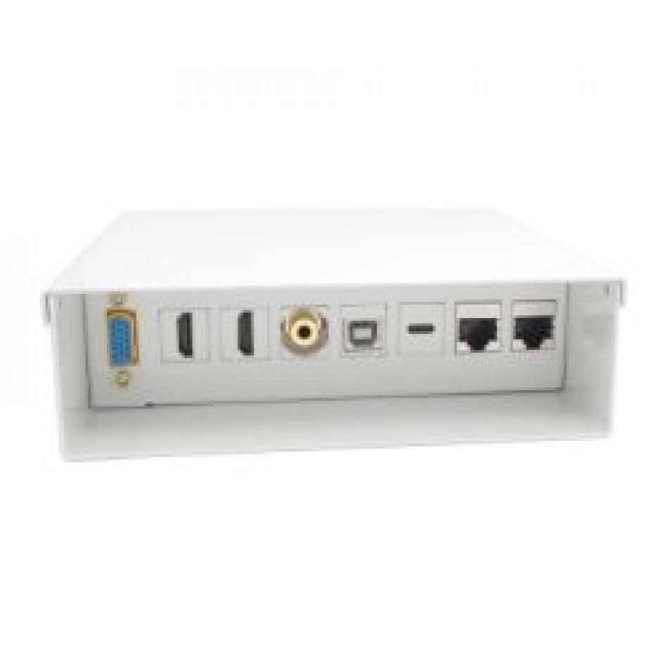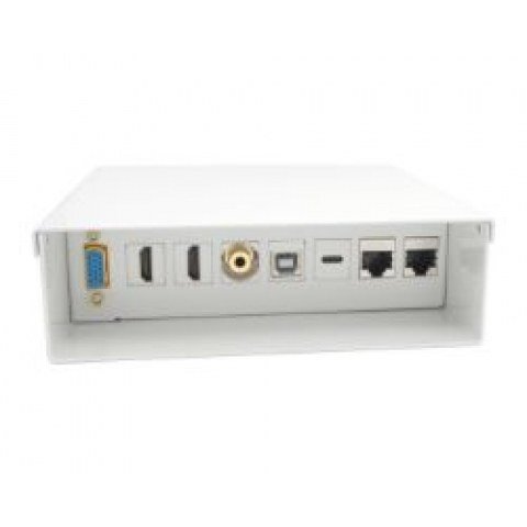 AISENS Caja de Conexiones VGA+JACK3.5+2xHDMI+1xUSB-C+1xUSB-B+2xRJ45 Cat.6A STP, Blanco. Tipo de producto: Multimedia connection box, Compatibilidad de los dispositivos: Universal, Marca compatible: Cualquier marca. Tipo de puerto de audio: 3,5 mm. Ancho: 150 mm, Profundidad: 150 mm, Altura: 45 mm. Ancho del paquete: 160 mm, Profundidad del paquete: 180 mm, Altura del paquete: 53 mm. Certificados de sostenibilidad: RoHS