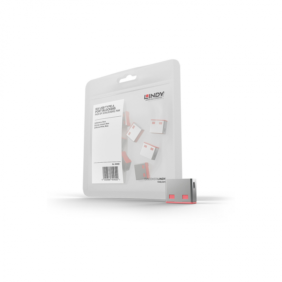 Lindy 40460 bloqueador de puerto USB tipo A Rosa Acrilonitrilo butadieno estireno (ABS) 10 pieza(s)