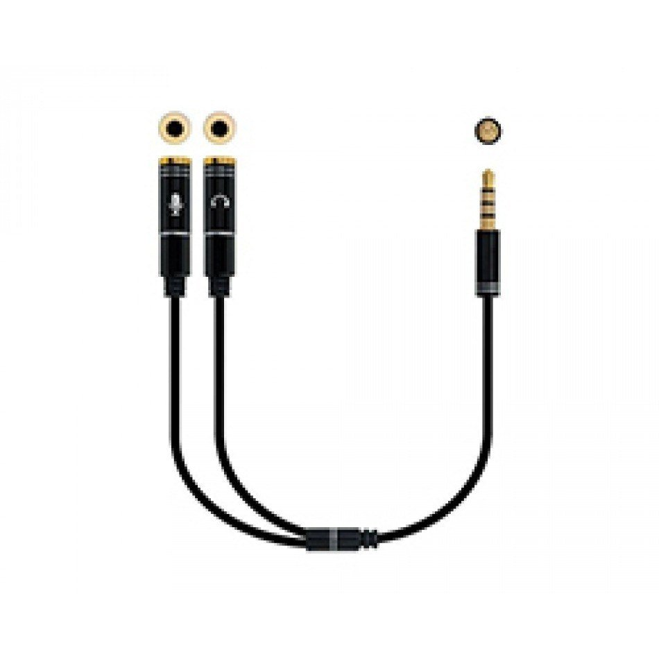Nanocable Cable adaptador Audio Jack 3.5/M 4pines - 2xJack 3.5/H 3pines, negro, 30 cm. Conector 1: 3,5mm, Género del conector 1: Macho, Conector 2: 2 x 3.5mm, Género del conector 2: Hembra, Material del cable: Cobre, Longitud de cable: 0,3 m, Color del producto: Negro