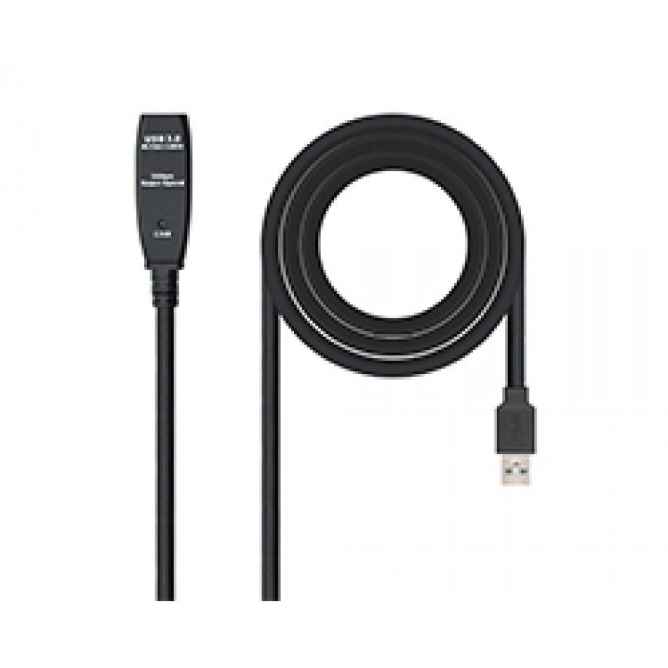 Nanocable Cable USB 3.0 prolongador con amplificador, tipo A/M-A/H, 5m. Longitud de cable: 5 m, Conector 1: USB A, Conector 2: USB A, Versión USB: USB 3.2 Gen 1 (3.1 Gen 1), Rango máximo de transferencia de datos: 5000 Mbit/s, Color del producto: Negro