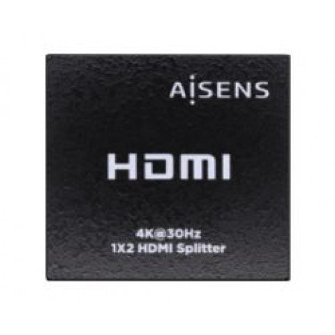 AISENS HDMI Duplicador 4k@30Hz 1x2 Con Alimentación, Negro. Tipo de puerto de vídeo: HDMI, Salida de vídeo: 2x HDMI. Máxima resolución: 3840 x 2160 Pixeles, Color del producto: Negro, Tipo HD: 4K Ultra HD. Cantidad por paquete: 1 pieza(s), Ancho del paquete: 67 mm, Profundidad del paquete: 112 mm. Tipos de enchufe de alimentación incluido: EU. Certificados de sostenibilidad: RoHS