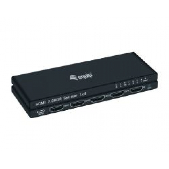 Equip 332717. Tipo de puerto de vídeo: HDMI, Salida de vídeo: 4x HDMI. Máxima resolución: 3840 x 2160 Pixeles, Color del producto: Negro, Material de la carcasa: Aluminio. Corriente de entrada: 1 A. Ancho: 5,2 mm, Profundidad: 0,95 mm, Altura: 14,7 mm. Cantidad por paquete: 1 pieza(s), Ancho del paquete: 8 mm, Profundidad del paquete: 4 mm