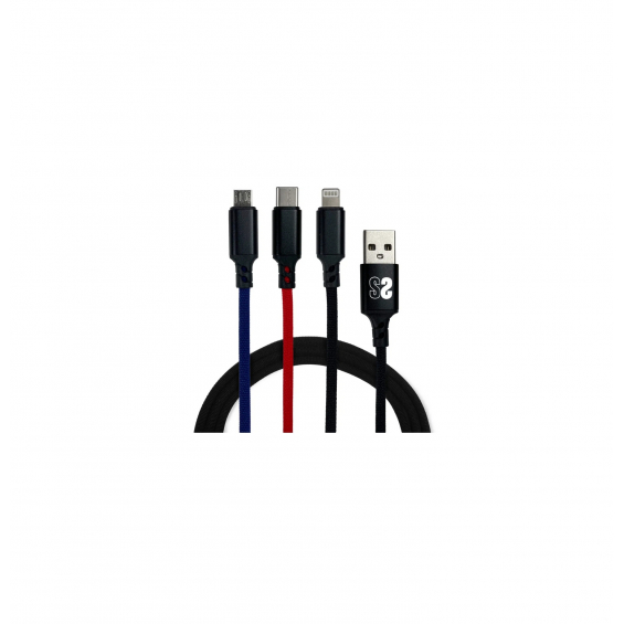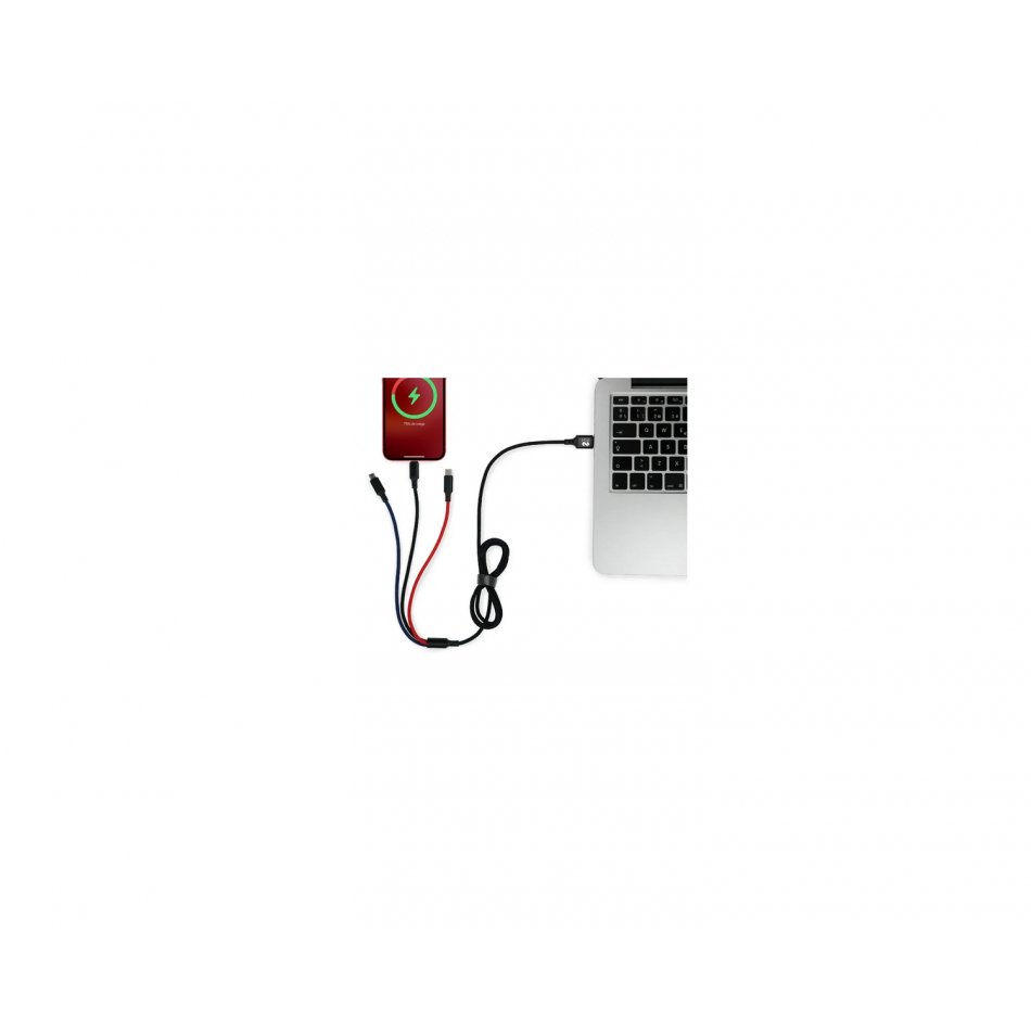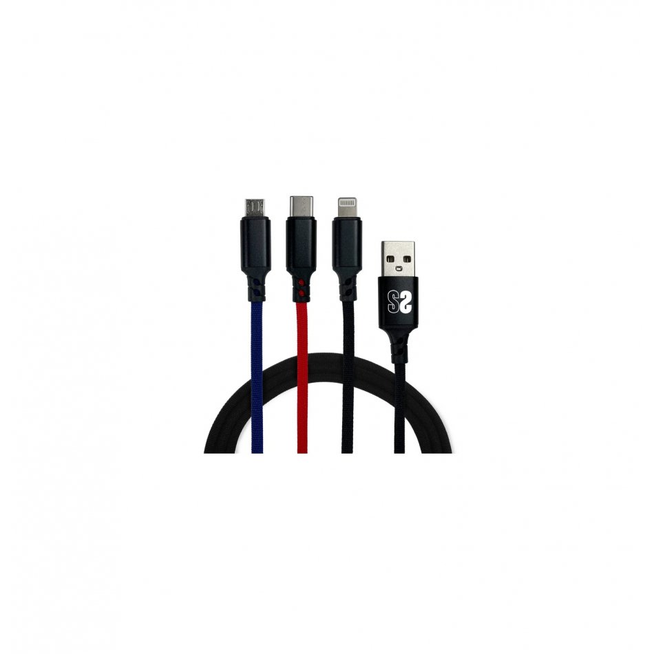 SUBBLIM Cable Premium 3 in 1 USB A - (Micro USB+Type C+Lightning) 1 m Negro, Azul, Rojo