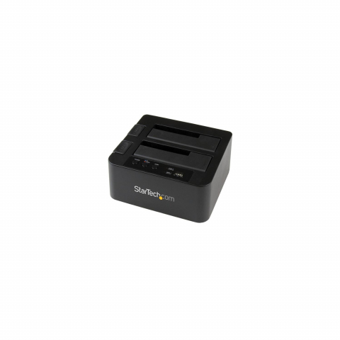 - ESPECIFICACIONES: Dock duplicador de 2 bahías SATA I/II/III - Conexión USB 3.2 Gen 1 (5Gbps) o eSATA (opcional)- Diseño sin Herramientas - de Carga Superior con Puertas para las Unidades y Botones de Expulsión - LEDs de Estado
