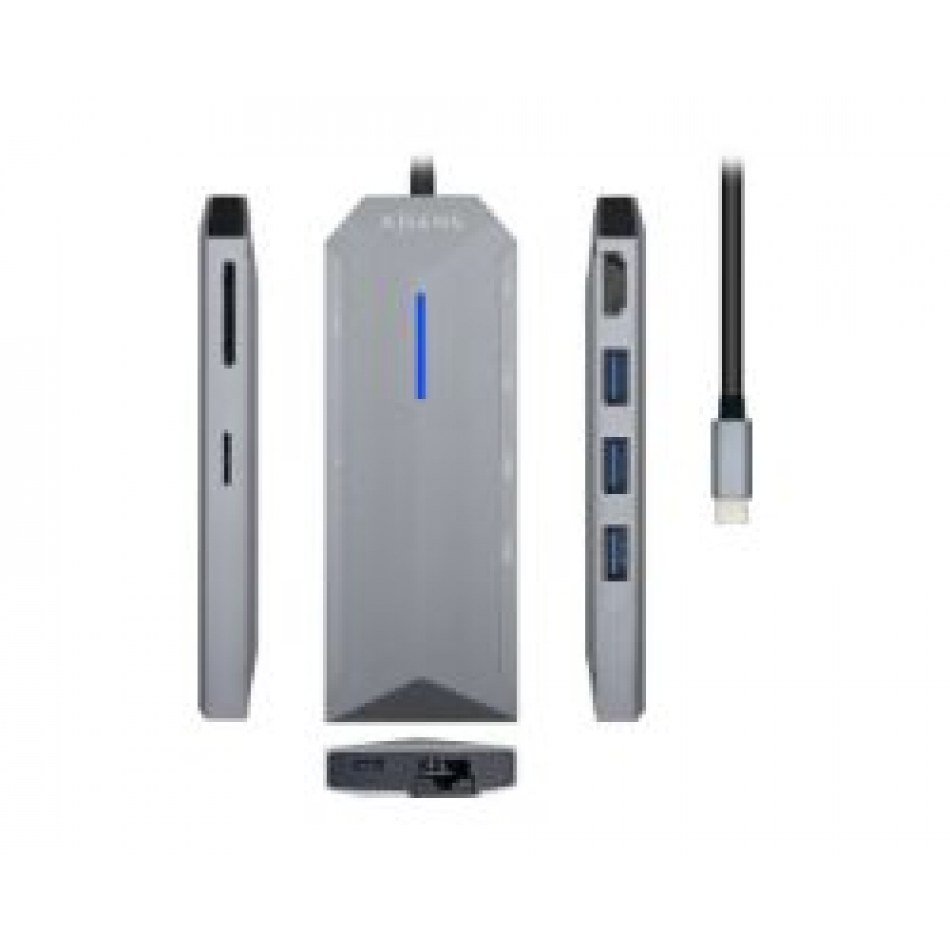 AISENS USB-C dock 8 en 1, USB-C a 1xHDMI, 1xRJ45, 3xUSB, 1xPD, 1xSD, 1xMicroSD, Gris, 15 cm. Tecnología de conectividad: Alámbrico, Interfaz de host: USB 3.2 Gen 1 (3.1 Gen 1) Type-C, Entrega de energía USB (USB Power Delivery) de hasta: 100 W. Ethernet LAN, velocidad de transferencia de datos: 10,100,1000 Mbit/s, Estándares de red: IEEE 802.3, IEEE 802.3ab, IEEE 802.3az, IEEE 802.3u, IEEE 802.3x. Color del producto: Gris, Tarjetas de memoria compatibles: MMC, MicroSD (TransFlash), MicroSDHC, MicroSDXC, RS-MMC, SD, SDHC, SDXC, Velocidad de transferencia de datos: 5 Gbit/s. Alimentación: USB, Longitud del cable USB: 0,15 m. Sistema operativo Windows soportado: Windows 10, Windows 11, Sistema operativo MAC soportado: Mac OS X 10.10 Yosemite, Mac OS X 10.11 El Capitan, Mac OS X 10.12 Sierra, Mac OS X 10.13 High..., Sistemas operativos móviles soportados: iOS 15, iPadOS