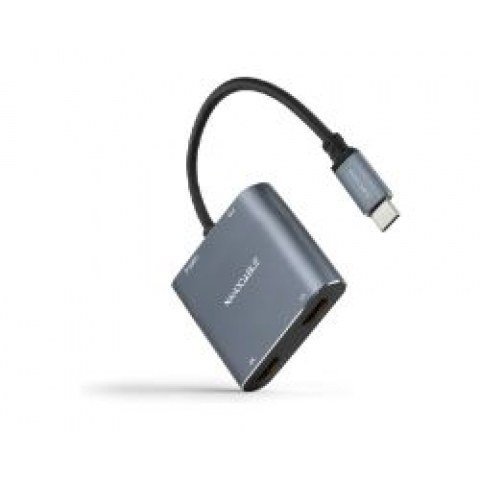 Nanocable Conversor USB-C a 2xHDMI/USB2.0/PD, 15 cm, Gris. Longitud de cable: 0,15 m, Conector 1: USB Tipo C, Género del conector 1: Macho. Certificados de sostenibilidad: RoHS. Ancho: 62 mm, Profundidad: 55 mm, Altura: 15 mm. Cantidad por paquete: 1 pieza(s), Ancho del paquete: 135 mm, Profundidad del paquete: 15 mm. Material: Aluminio