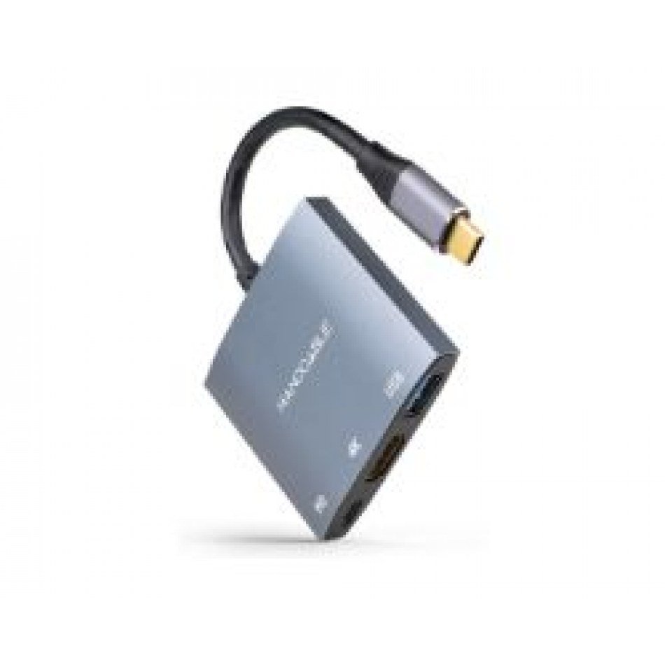 Nanocable Conversor USB-C a HDMI/USB3.0/USB-C PD, 15 cm, Gris. Longitud de cable: 0,15 m, Conector 1: USB Tipo C, Conector 2: USB Type-C + USB Type-A + HDMI. Certificados de sostenibilidad: RoHS. Ancho: 58 mm, Profundidad: 52 mm, Altura: 11 mm. Cantidad por paquete: 1 pieza(s), Ancho del paquete: 135 mm, Profundidad del paquete: 15 mm. Material: Aluminio
