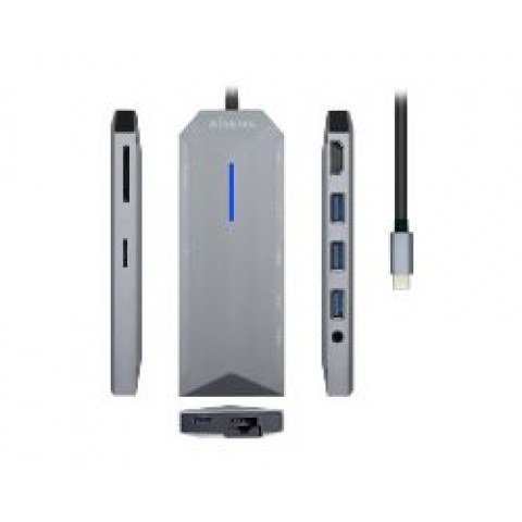 AISENS USB-C Dock 9 en 1, USB-C a 1x HDMI, 1xRJ45, 3x USB, 1x PD, 1x Audio, 1x SD, 1x Micro SD, Gris, 15 cm. Tecnología de conectividad: Alámbrico, Interfaz de host: Thunderbolt 3, Entrega de energía USB (USB Power Delivery) de hasta: 100 W. Ethernet LAN, velocidad de transferencia de datos: 10,100,1000 Mbit/s, Estándares de red: IEEE 802.3, IEEE 802.3ab, IEEE 802.3az, IEEE 802.3u, IEEE 802.3x. Color del producto: Gris, Tarjetas de memoria compatibles: MMC, Memoria extraíble, MicroSDHC, MicroSDXC, RS-MMC, SD, SDHC, SDXC, Velocidad de transferencia de datos: 5 Gbit/s. Longitud del cable: 0,15 m. Certificados de sostenibilidad: CE, RoHS