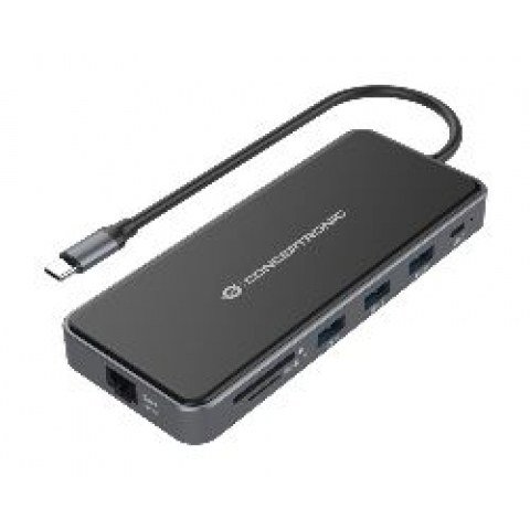 Conceptronic DONN15G. Tecnología de conectividad: Alámbrico, Interfaz de host: USB 3.2 Gen 1 (3.1 Gen 1) Type-C, Entrega de energía USB (USB Power Delivery) de hasta: 100 W. Ethernet LAN, velocidad de transferencia de datos: 1000 Mbit/s. Color del producto: Gris, Tarjetas de memoria compatibles: MicroSD (TransFlash), SD, Velocidad de transferencia de datos: 5000 Gbit/s. Longitud del cable USB: 0,25 m. Sistema operativo Windows soportado: Windows 10, Windows 7, Windows 8, Windows Vista, Windows XP, Sistema operativo MAC soportado: Mac OS X 10.10 Yosemite, Mac OS X 10.11 El Capitan, Mac OS X 10.12 Sierra, Mac OS X 10.13 High..., Sistemas operativos móviles soportados: Android 5.0, Android 5.1, Android 6.0, Android 7.0, Android 7.1, Android 7.1.2, Android 8.0,...