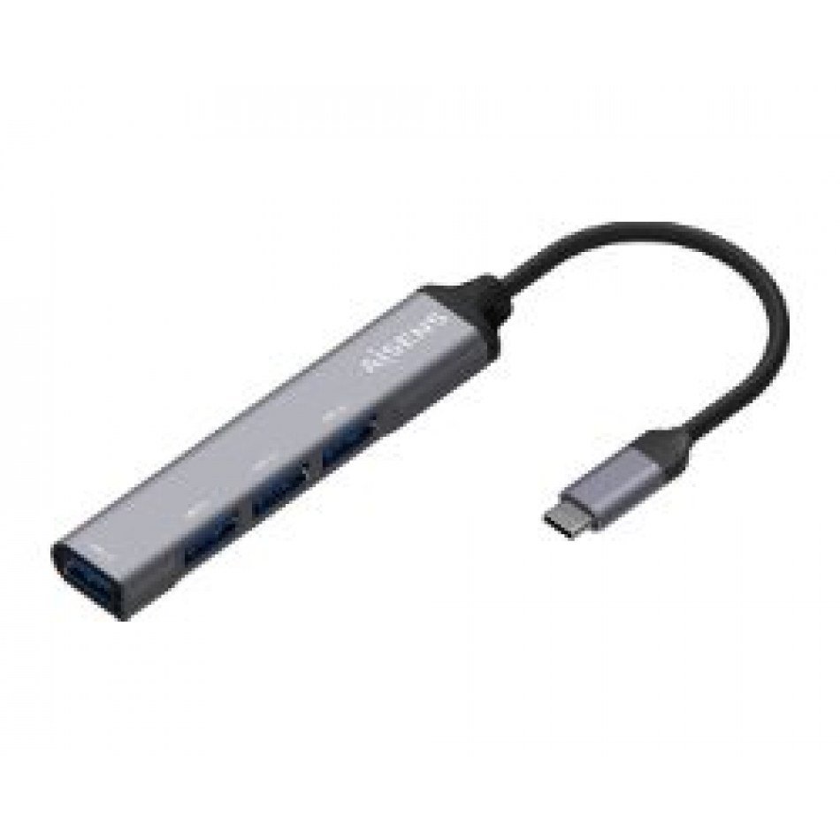 AISENS Hub USB 3.1 USB-C, Tipo C/M - 4x Tipo A/H, Gris, 10 cm. Interfaz de host: USB 3.2 Gen 1 (3.1 Gen 1) Type-C, Interfaces de concentradores: USB 3.2 Gen 1 (3.1 Gen 1) Type-A. Velocidad de transferencia de datos: 5000 Mbit/s, Color del producto: Gris, Material de la carcasa: Aluminio. Tipo de fuente de alimentación: USB. Ancho: 20 mm, Profundidad: 105 mm, Altura: 10 mm. Cantidad por paquete: 1 pieza(s), Ancho del paquete: 120 mm, Profundidad del paquete: 10 mm