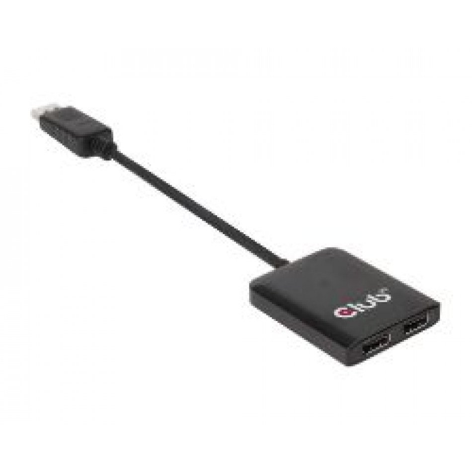 CLUB3D Multi Stream Transport Hub DisplayPort 1.2 Dual Monitor. Tipo de puerto de vídeo: DisplayPort, Salida de vídeo: 2x Displayport, Entrada de vídeo: Displayport 1.2. Máxima resolución: 3840 x 2160 Pixeles, Color del producto: Negro, Máxima velocidad de actualización: 60 Hz. Voltaje de entrada AC: 5 V, Corriente de entrada: 2 A. Dimensiones (Ancho x Profundidad x Altura): 244 x 49 x 11 mm, Peso: 54 g. Cantidad por paquete: 1 pieza(s), Longitud del paquete: 16 cm, Ancho del paquete: 240 mm