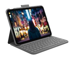 Logitech Slim Folio. Diseño de teclado: QWERTY, Idioma del teclado: Español, Separación entre teclas: 1,8 cm. Marca compatible: Apple, Compatibilidad: iPad (10.ª generación) Modelo: A2696, A2757, A2777, Color del producto: Gris. Tecnología de conectividad: Inalámbrico, Interfaz del dispositivo: Bluetooth. Fuente de energía: Batería, Vida útil de la batería: 3 año(s). Sistemas operativos móviles soportados: iPadOS