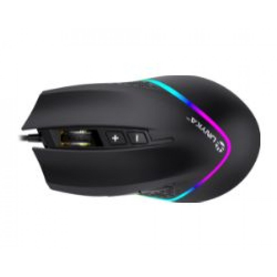 UNYKAch UK505451. Factor de forma: Ambidextro. Tecnología de detección de movimientos: Óptico, Interfaz del dispositivo: USB tipo A, Resolución de movimiento: 6400 DPI, Tipo de botones: Botones presionados, Cantidad de botones: 7, Tipo de desplazamiento: Rueda. Fuente de energía: Cable. Color del producto: Negro