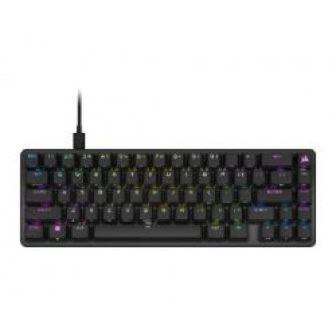 Corsair CH-91A401A-ES. Formato del teclado: 65%. Estilo de teclado: Derecho. Tecnología de conectividad: Alámbrico, Interfaz del dispositivo: USB, Interruptor del teclado: Switch de tecla optomecánico, Diseño de teclado: QWERTZ, Teclado, cantidad de teclas: 68. Tipo de retroiluminación: LED RGB. Uso recomendado: Juego. Color del producto: Negro