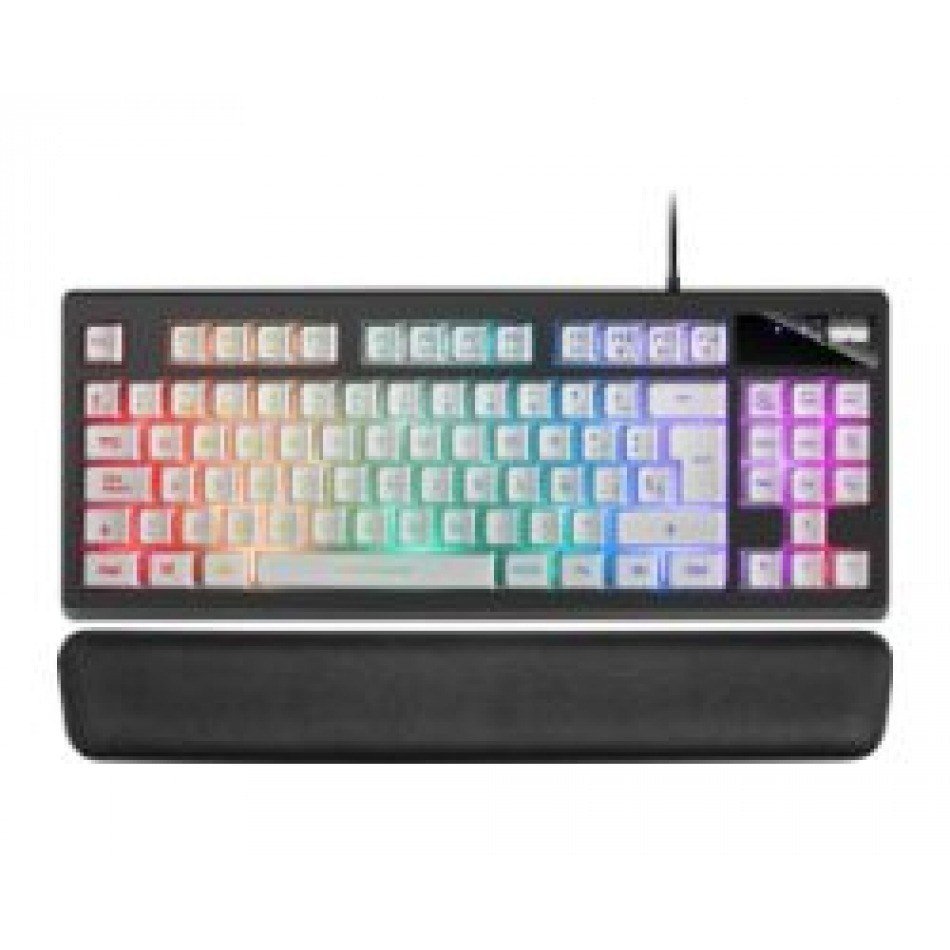 Mars Gaming MKAXWES Teclado Compacto TKL H-Mech Iluminación RGB 9 Efectos Reposamuñecas Gel Blanco Idioma Español. Formato del teclado: Completo (100%). Estilo de teclado: Derecho. Interfaz del dispositivo: USB, Interruptor del teclado: Interruptor de membrana. Tipo de retroiluminación: LED RGB, Descansa muñecas. Longitud de cable: 1,8 m. Uso recomendado: Juego. Color del producto: Negro, Blanco