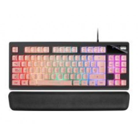 Mars Gaming MKAXPES Teclado Compacto TKL H-Mech Iluminación RGB 9 Efectos Reposamuñecas Gel Rosa Idioma Español. Formato del teclado: Completo (100%). Estilo de teclado: Derecho. Interfaz del dispositivo: USB, Interruptor del teclado: Interruptor de membrana. Tipo de retroiluminación: LED RGB, Descansa muñecas. Longitud de cable: 1,8 m. Uso recomendado: Juego. Color del producto: Negro, Rosa