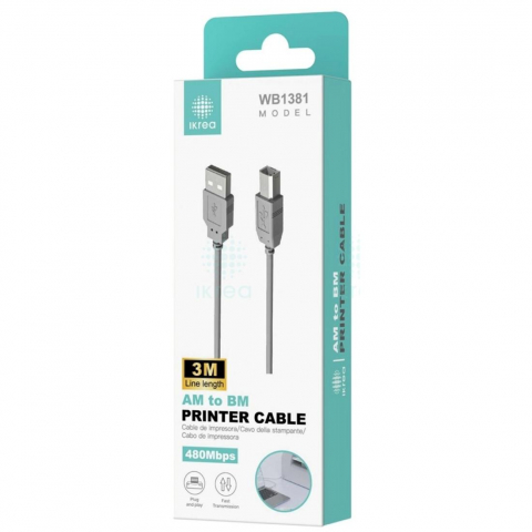 Ikrea WB1381 Cable de Impresora USB 2.0 3 Metros