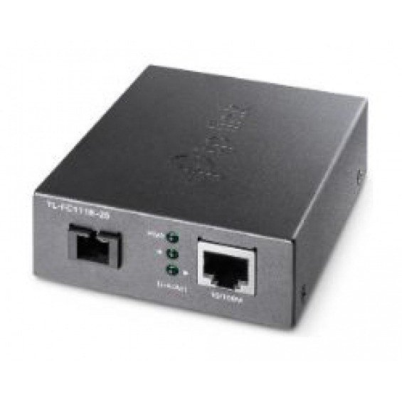 TP-Link TL-FC111B-20. Rango máximo de transferencia de datos: 100 Mbit/s, Estándares de red: IEEE 802.3, IEEE 802.3i, IEEE 802.3x, Tecnología de cableado ethernet de cobre: 10BASE-T, 100BASE-T. Conector fibra óptica: SC, Tecnología de conectividad: Alámbrico. Distancia de transferencia máxima: 20000 m, Estructura de modo de fibra: Monomodo, Diámetros de fibra de cable soportado: 9/125 µm. Indicadores LED: Actividad, Enlace, Poder, Color del producto: Negro, Certificación: FCC, CE. Voltaje de salida: 5 V, Corriente de salida: 0,6 A