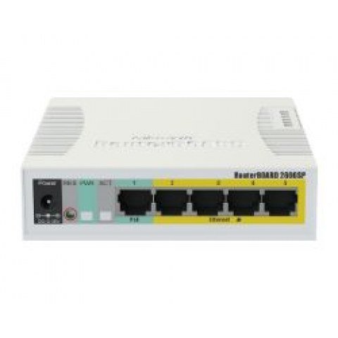 Mikrotik RB260GSP. Tipo de interruptor: Gestionado. Puertos tipo básico de conmutación RJ-45 Ethernet: Gigabit Ethernet (10/100/1000), Cantidad de puertos básicos de conmutación RJ-45 Ethernet: 5, Conector eléctrico: Toma de entrada de CC. Energía sobre Ethernet (PoE)