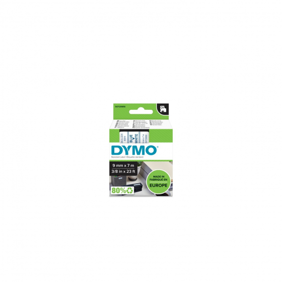 Dymo D1 Etiquetas estandar azul sobre blanco 9mm x 7m poliester