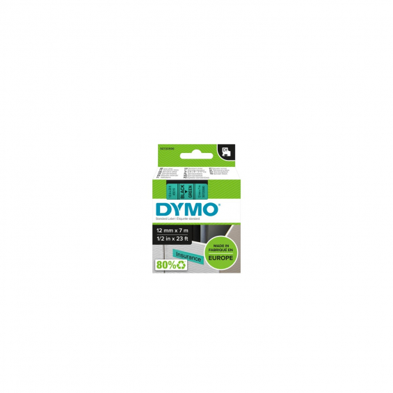 DYMO D1 - Etiquetas estándar - Negro sobre verde - 12mm x 7m