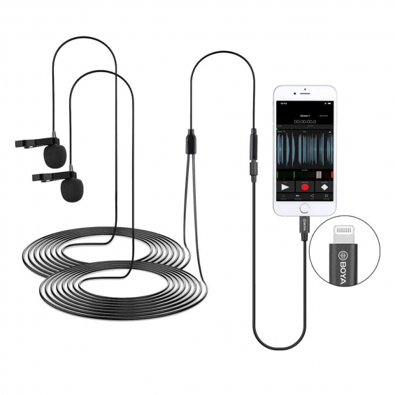 BOYA BY-M2D Micrófono de corbata doble conexión Lightning