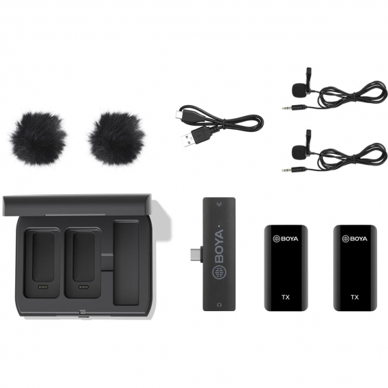 Micrófono Doble Inalámbrico USB-C Boya XM6-K6El Micrófono Inalámbrico USB-C Boya BY-XM6-K6 es un sistema de micrófono inalámbrico de dos canales que ofrece un sonido de alta calidad. Con su avanzada tecnología de transmisión de señales de 2,4 GHz, este micrófono proporciona señales estables con un alcance de hasta 100 metros sin obstáculos.No se requieren aplicaciones ni cables adicionales para utilizar este micrófono. Se conecta automáticamente al encenderlo y conectarlo. Los transmisores tienen una duración de batería de hasta 7 horas y cuentan con una pantalla OLED fácil de leer, vívida e informativa.El receptor del micrófono tiene varias características útiles, como ajuste de salida mono/estéreo y salida de auriculares. Además, se adapta al puerto USB-C de smartphones, tabletas, ordenadores y dispositivos iPad Pro o Air.El micrófono viene con micrófonos de solapa omnidireccionales, lo que permite una captura de audio clara y precisa. También incluye un estuche de carga portátil para mayor comodidad y facilidad de transporte.¡Obtén un sonido de alta calidad con el Micrófono Doble Inalámbrico USB-C Boya XM6-K6! ¡Stock disponible en las Islas Canarias, aprovecha ahora!