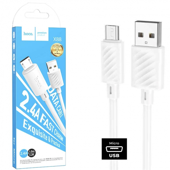 Cable USB a Micro 1 metro 3 amp Hoco X88 Blanco