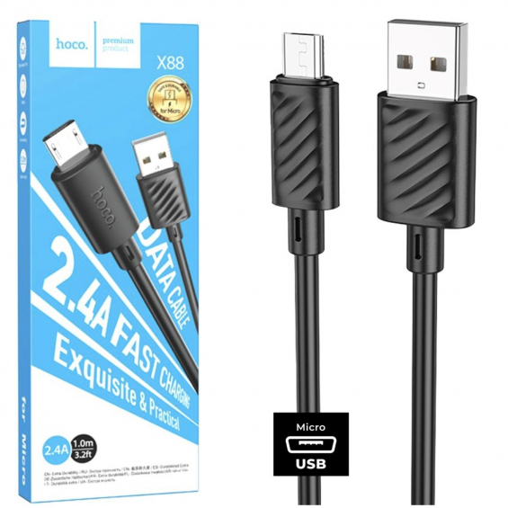 Cable USB a Micro USB 1 m 60W Hoco X88 Gratified Negro