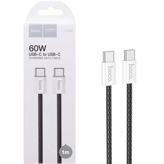 Hoco X104 Cable de 60W de Carga y de Datos Cable Tipo-C a Tipo-CEl cable USB Hoco X89 Wind Type-C to Type-C es un cable universal de alta tecnología que ofrece una carga rápida y una transferencia de datos eficiente. Este modelo cuenta con un diseño original y práctico, y se destaca por su alta fiabilidad, larga vida útil y versatilidad.El cable es compatible con dispositivos que utilizan el puerto Tipo-C tanto para cargar como para sincronizar datos. Puede conectar sus gadgets a un ordenador y transferir archivos a alta velocidad.El cable está hecho con materiales de alta calidad para garantizar su durabilidad. El trenzado externo del cable está hecho de hilos de nailon ultrarresistentes, que evita que se enrede y proporciona una mayor resistencia al estiramiento y al desgarro. Además, las carcasas de los conectores están hechas de aleación de aluminio, con bordes redondeados y protección adicional contra roturas en los puntos de conexión con el cable.Gracias a su blindaje de alta calidad y a su núcleo de cobre engrosado, este cable puede soportar una corriente de hasta 3 A y una potencia de carga de hasta 60 W, lo que permite una carga rápida y eficiente de sus dispositivos.La conexión entre dispositivos se establece a través de Type-C a Type-C, lo que garantiza una conexión segura y estable.Con una longitud de 1 metro, este cable le brinda la flexibilidad necesaria para usar y cargar sus dispositivos cómodamente sin restricciones de distancia.¡Obtén el cable Hoco X104 ahora y disfruta de una carga rápida y eficiente en tus dispositivos! ¡Stock disponible en las Islas Canarias!