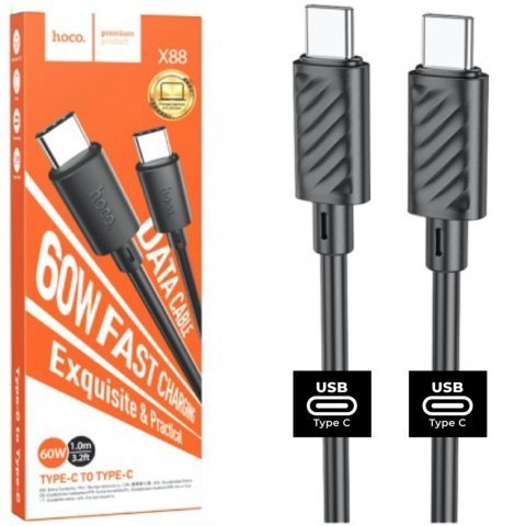 Cable USB-C a USB-C 1 metro 60W Hoco X88 Gratified Negro