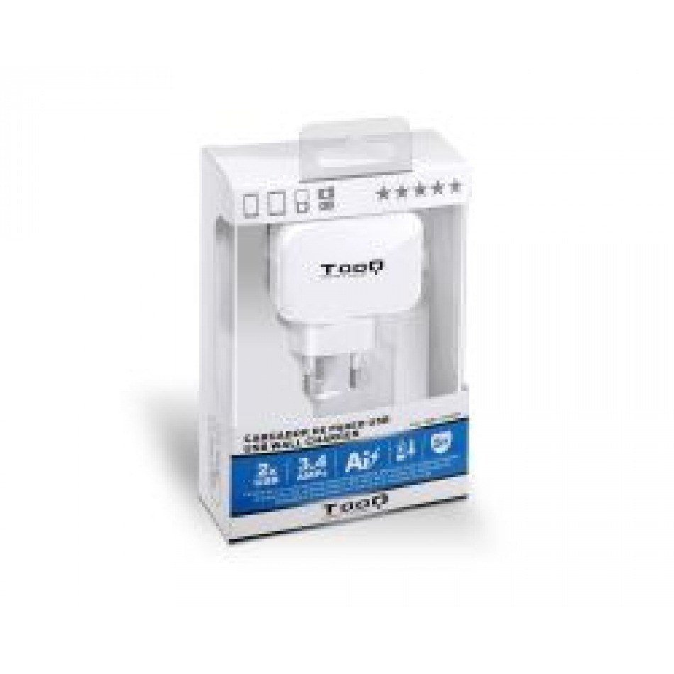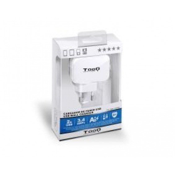 TooQ TQWC-1S02WT. Tipo de cargador: Interior, Alimentación: Corriente alterna, Compatibilidad del cargador: GPS, MP3, MP4, Teléfono móvil, Consola de juegos portátil, Smartphone, Tableta. Voltaje de entrada: 100 - 240 V, Voltaje de salida máximo: 5 V, Corriente de salida de adaptador AC: 3,4 A. Cantidad de puertos USB 2.0: 2. Color del producto: Blanco