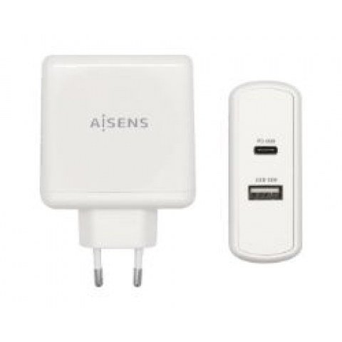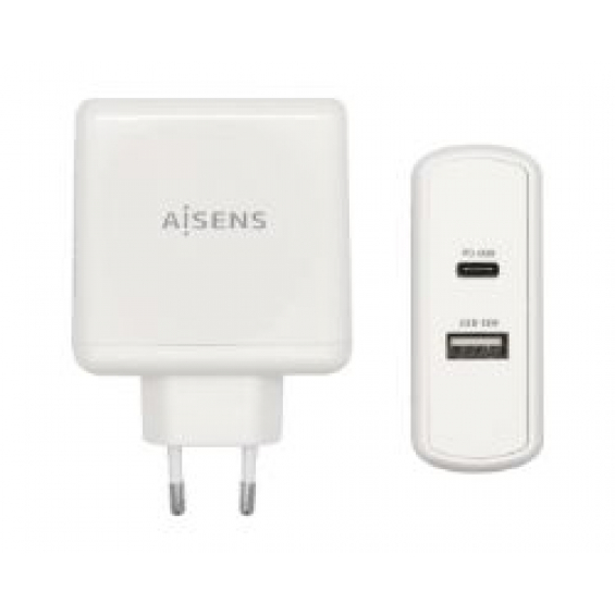 AISENS Cargador 57 W, 1x USB-C PD3.0 45 W, 1x USB-A 5 V / 2.4 A 12 W, Blanco. Tipo de cargador: Interior, Alimentación: Corriente alterna, Compatibilidad del cargador: GPS, Mando para videojuegos, MP3, MP4, Teléfono móvil, Portátil, Smartphone, Tableta. Voltaje de entrada: 100 - 240 V, Voltaje de salida máximo: 20 V. Cantidad de puertos USB 2.0: 1, Número de puertos USB Tipo C: 1, Carga rápida, Funciones de protección de poder: Sobrecarga, Cortocircuito. Color del producto: Blanco