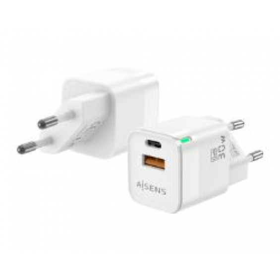 AISENS Cargador Gan 30W, 1xUSB-C PD3.0 QC4.0, 1xUSB-A QC3.0, Blanco. Tipo de cargador: Interior, Alimentación: Corriente alterna, Compatibilidad del cargador: Universal. Voltaje de entrada: 100 - 240 V. Cantidad de puertos USB 2.0: 1, Número de puertos USB Tipo C: 1, Carga rápida, Funciones de protección de poder: Sobrecarga, Cortocircuito. Color del producto: Blanco