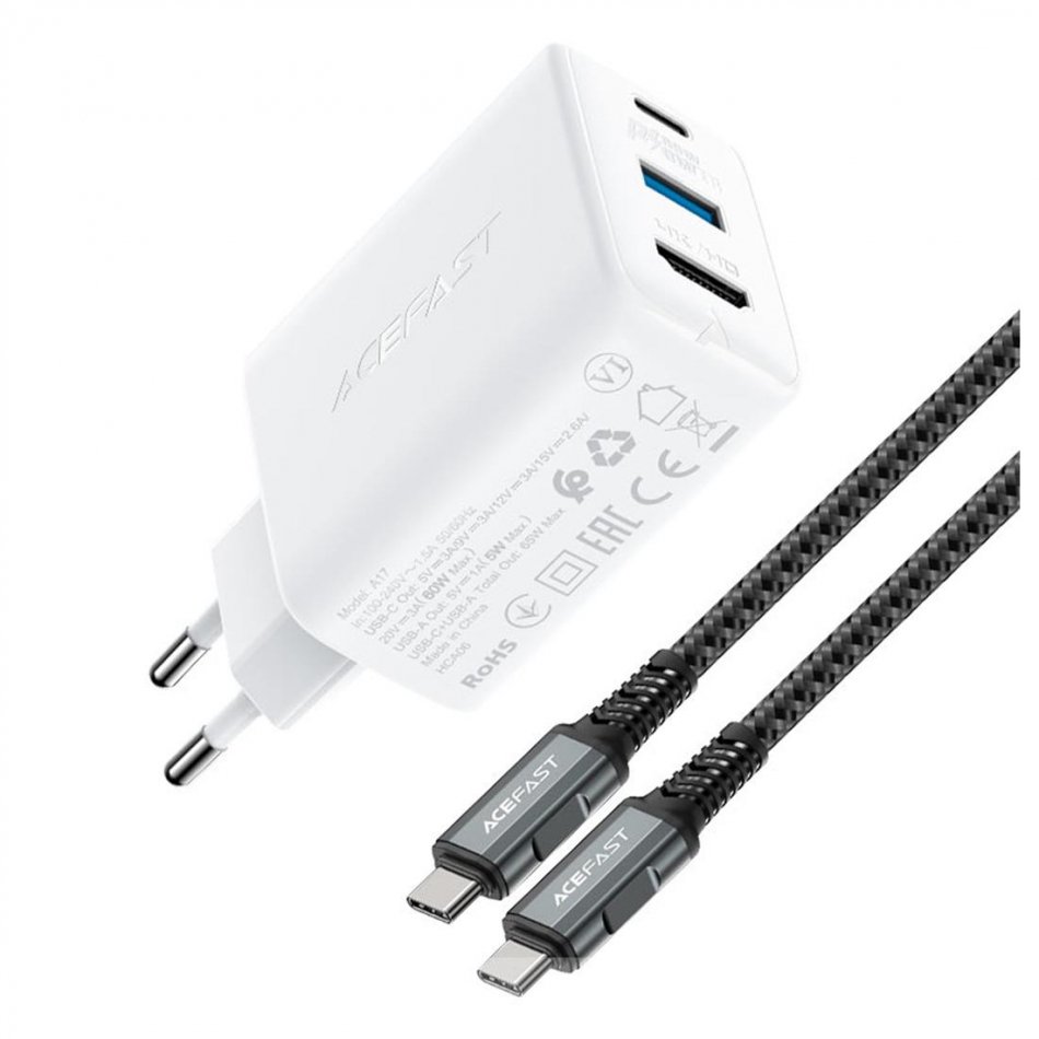 Cargador USB-C- USB y HDMI 65W+ Cable USB-C Acefast A17 Blanco