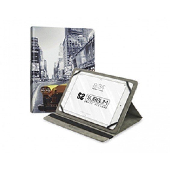 SUBBLIM Funda Tablet Universal TRENDY CASE NY TAXI 10.1". Tipo de funda: Folio, Marca compatible: Cualquier marca, Compatibilidad: Universal. Compatible con todas las Tablet del mercado de hasta 10.1", Tamaño máximo de pantalla: 25,6 cm (10.1"), Número de modos de soporte: 3. Peso: 356 g