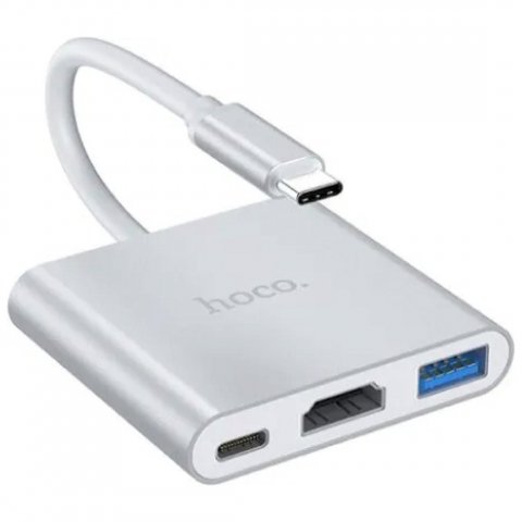 Hoco HB14 Adaptador Hub USB-C a HDMI, USB-C para Carga y USB 3.0