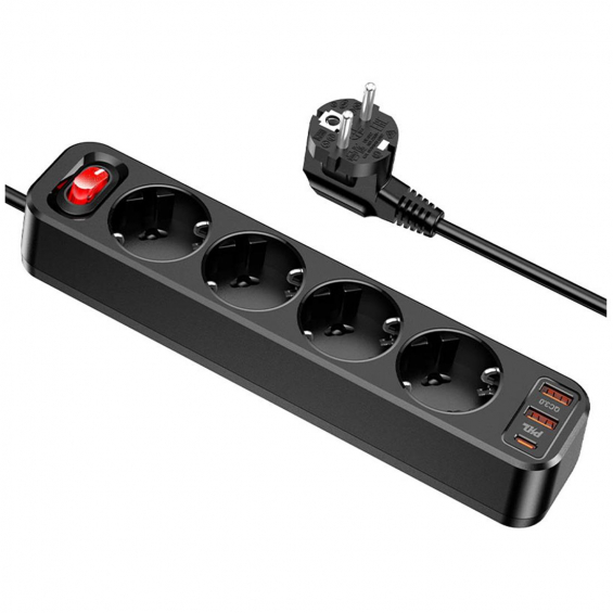 Hoco NS1 Regleta 4 Tomas con 2x USB 18w y USB-C 20w Negro