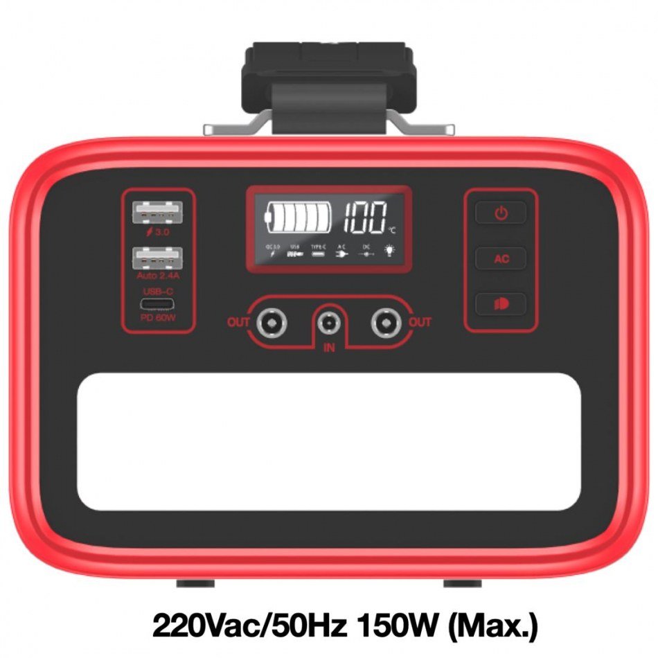 Energizer PPS240W2_SR Power StationEl Energizer PPS240W2_SR Power Station es un dispositivo portátil de alta capacidad diseñado para cargar smartphones, tabletas, pequeños electrodomésticos y mucho más. Con una capacidad de 72.000 mAh, este power bank es capaz de cargar tus dispositivos varias veces antes de necesitar una recarga.Ultra Alta CapacidadCon una capacidad de 230.4Wh y 72000mAh, este power bank es una de las soluciones de carga más avanzadas en el mercado. Su batería de alta calidad LiFePO4 puede recargar hasta 2.000 veces, lo que la hace más avanzada que otros PPS en el mercado.Múltiples salidasEl PPS240W2_SR Power Station está construido con 1x toma de CA de 150W, 1x USB-C PD de 60W, 2x USB-A, 2x salidas de CC, una función de iluminación con varios modos basados en su uso ¡siempre que lo necesite! La salida de CA con hasta 150W puede alimentar electrodomésticos pequeños y portátiles como nevera móvil de coche, ventilador pequeño, mini exprimidor, monitor de TV, etc. La tecnología USB-C Power Delivery de 60 W y la salida USB-A inteligente de 18 W le permiten cargar rápidamente los nuevos iPhones, Samsung y otros dispositivos USB-C o Android.Tecnología de carga rápidaLa salida USB-C Power Delivery de 60 W y la salida USB-A inteligente de 18 W pueden cargar rápidamente los nuevos iPhones, Samsung y otros dispositivos USB-C o Android, Nintendo Switch y portátiles.Tecnología MTTPLa tecnología MTTP maximiza la tensión de alimentación en la carga de CC a CC que permite que el panel solar recargue la batería de manera eficiente.Indicador LCDEl indicador LCD muestra el nivel de carga de la batería y el estado de carga, incluyendo la temperatura interior de trabajo.Peso ligeroCon un peso de tan sólo 3,3 kg, el PPS240W2_SR Power Station es perfecto para acampar y realizar actividades al aire libre.Control de calorCon la última tecnología de control de calor, utilizando un diseño de conducto de aire automático y un chip preciso para disipar el calor (incluyendo ventilador de refrigeración incorporado).