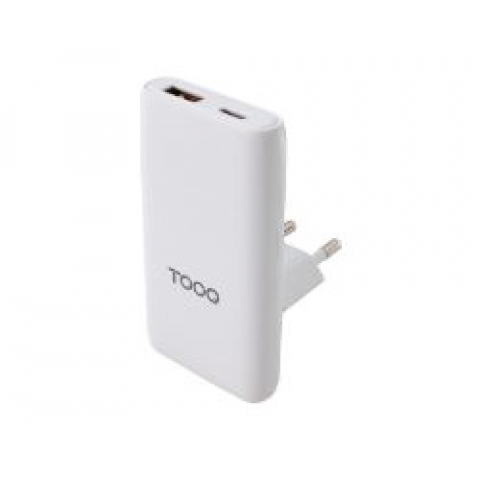 Cargador Viaje TOOQ GaN Usb-C/PD Usb-A/QC 65W Blanco