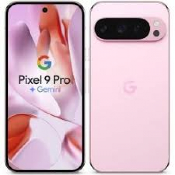 Google Pixel 9 Pro 5G en color rosa con 16 GB de RAM y 256 GB de almacenamiento. Alta potencia y calidad fotográfica.