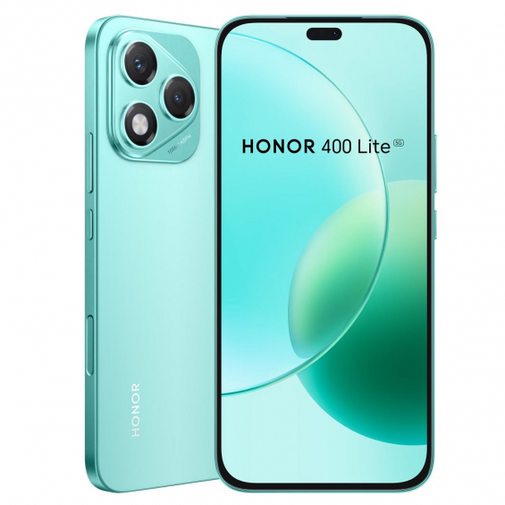Smartphone Honor 400 Lite 5G en color verde Marrs, con pantalla AMOLED de 6.7 pulgadas y cámara dual de 108 MP.