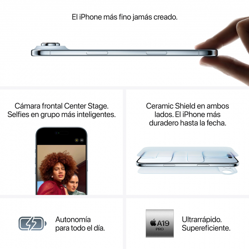 El iPhone Air 6.5'' ofrece potencia en un diseño delgado, con 256GB de almacenamiento y cámara de 48 MP.