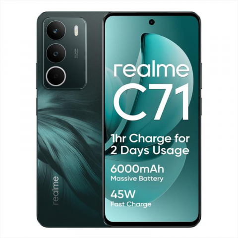 Descubre el realme C71 , un smartphone diseñado para mantenerte conectado y entretenido. Con su impresionante pantalla HD+ de 6.67 pulgadas y tasa de refresco de 120Hz , disfrutarás de imágenes nítidas y fluidas.
