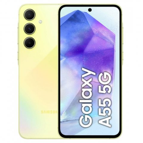 Samsung A55 5G 8GB 256GB Lemon (SM-A556)El Samsung Galaxy A55 redefine la experiencia móvil con su avanzado sistema operativo Android 14 y el potente procesador Exynos 1480. Destaca su pantalla Super AMOLED de 6.6 pulgadas con una fluida tasa de refresco de 120 Hz. Incorpora cámaras de alta resolución, conectividad de última generación como WiFi 6 y NFC, y cuenta con una robusta batería de 5000 mAh. Este dispositivo, resistente al agua y al polvo (IP67), es una combinación perfecta de rendimiento y estilo.CaracterísticasDi hola a lo Awesome. Llega el modelo superior de la nueva gama de smartphones de Samsung. Su diseño icónico con formas redondeadas, elegante y minimalista te ofrece la comodidad y versatilidad que buscas en un teléfono. Disponible en dos bonitos colores: Black y Light Blue. La pantalla Super AMOLED de 6,6” cuenta con una resolución de 1080x2340 y una tasa de refresco de 120 Hz para un visionado de gran calidad.Tres cámaras. Imágenes impresionantes. Disfruta de un completo set de cámaras en tu bolsillo con la triple lente de gran calidad óptica. 50MP para la cámara principal, 12MP de Gran Angular y 5 MP de cámara macro. Pero no acaba ahí. La cámara frontal te ofrece nada más y nada menos que 32MP para unos selfies perfectos para renovar tu foto de perfil.Potencia en la que puedes confiar. Disfruta de una multitarea óptima y ejecuta las apps que necesites al mismo tiempo sin interrupciones y de manera fluida. Gracias al procesador superpotente Octa-core tu experiencia de visionado, gaming y navegación será superior.Resiste tanto como tú. Puedes estar tranquilo, tu smartphone no te abandonará cuando más lo necesites. Y es que su batería de larga duración de 5000 mAh y su carga superrápida te aseguran la autonomía que necesitas para que nada te pare en tu día a día.Protege lo que te importa. Lleva lo que te importa siempre contigo con un almacenamiento de 256GB. Gracias a su sistema biométrico con lector de huellas y reconocimiento facial, tu galería y tus aplicaciones siempre estarán seguras. Además, cuenta con la seguridad extra de Samsung Knox Vault que protegerá tus datos y privacidad.Especificaciones Samsung Galaxy A55Sistema operativo: Android 14Procesador: Exynos 1480 Octa-Core (2.75GHz,2GHz) Pantalla: 6.6”, 1080 x 2340 (FHD+) Super AMOLED (120 Hz) SIM: SIM 1 + Hybrid (SIM or MicroSD) or eSIM Memoria RAM: 8 GB RAMAlmacenamiento interno: 256 GB InternaCámaras50 MP Principal (F1.8) OIS12 MP Gran Angular (F2.2)5 MP Macro (F2.4)32 MP Frontal (F2.2)ConectividadWiFi 6NFCBT v5.3 Otros:One UI 6.1Dolby AtmosIP67 Lector de huellaReconocimiento facial Dimensiones y pesoDimensiones 161.1 x 77.4 x 8.2 mmPeso 213gBatería5000 mAhCarga: 25WContenido de la cajaGalaxy A55Cable (USB-C a USB-C)¡Descubre el poder del Galaxy A55 5G y vive una experiencia única con Samsung! ¡Stock disponible en las Islas Canarias!
