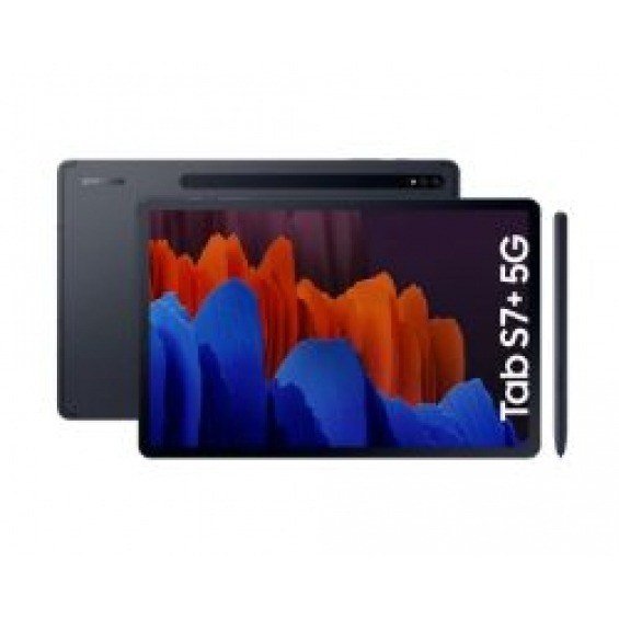 Samsung Galaxy Tab S7+ 5G SM-T976B. Diagonal de la pantalla: 31,5 cm (12.4"), Resolución de la pantalla: 2800 x 1752 Pixeles, Tecnología de visualización: Super AMOLED. Capacidad de almacenamiento interno: 128 GB. Frecuencia del procesador: 2,4 GHz, Familia de procesador: Qualcomm Snapdragon, Modelo del procesador: 865+. Memoria interna: 6 GB. Resolución de la cámara trasera (numérica): 5 MP, Resolución de la cámara frontal (numérica): 8 MP. Estándar Wi-Fi: Wi-Fi 6 (802.11ax). Tarjeta de lectura integrada. Peso: 575 g. Sistema operativo instalado: Android 10. Color del producto: Negro