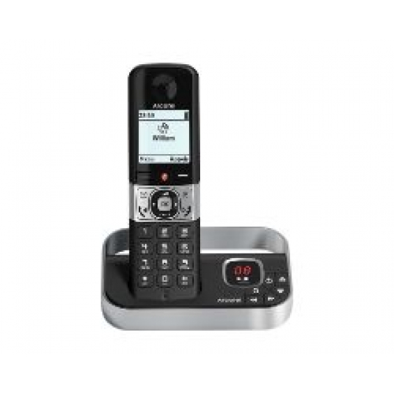 Alcatel F890 Voice Duo zwart. Tipo: Teléfono DECT, Tipo de auricular: Terminal inalámbrico. Altavoz. Rango máximo en interiores: 50 m, Rango máximo en exteriores: 300 m. Capacidad de lista de direcciones: 200 entradas. Identificador de llamadas. Diagonal de la pantalla: 4,57 cm (1.8"). Color del producto: Negro, Plata. Número de teléfonos móviles incluidos: 2