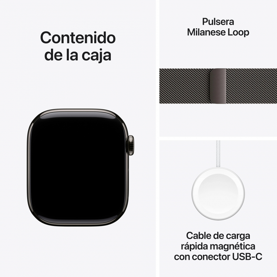 Equipado con conectividad 4G, GPS y WiFi, te permite mantenerte conectado mientras realizas tus actividades favoritas. Su diseño elegante en color gris, combinado con la pulsera Milanese Loop, lo convierten en un complemento perfecto para cualquier ocasión.